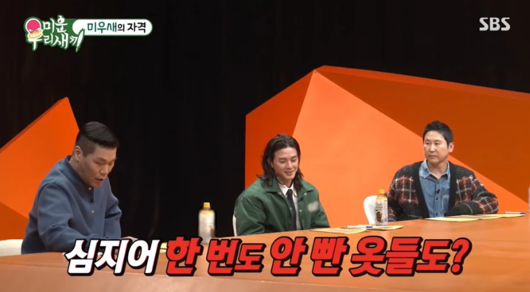 이에 신동엽은 "물론 겉옷은 그럴 수 있는데 안에 받쳐입는 건…"이라고 말했다. 김지훈은 "하얀 티셔츠인데도 사서 한 번도 안 빤 옷 되게 많다"고 해 모두를 충격에 빠트렸다.