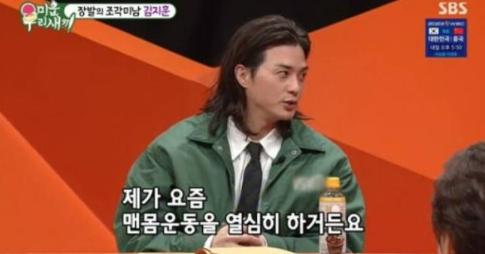 서장훈은 "'여기는 진짜 내가 잘생긴 것 같다' 하는 곳 어디냐"라며 물었고, 김지훈은 "제가 요즘 맨몸 운동을 열심히 하고 있다. 예전보다 광배근이 샤프하게 펼쳐지더라. 광배근이 멋있다"라며 털어놨다.