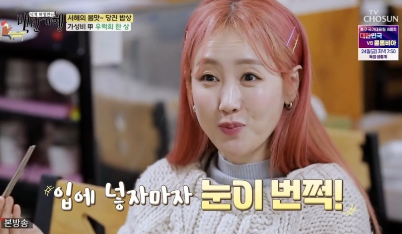 '백반기행'에서 별은 일일 식객으로 출연, 아침 일찍부터 고기잡이배에 올라 직접 도다리를 잡아 온 허영만을 밝은 에너지로 맞이했다.