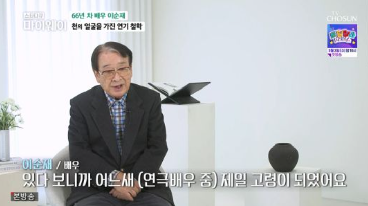 방송에서 이순재는 동료 배우 신구, 박정자, 김성녀와 대화를 나누면서 배우로서의 자부심을 드러냈다.