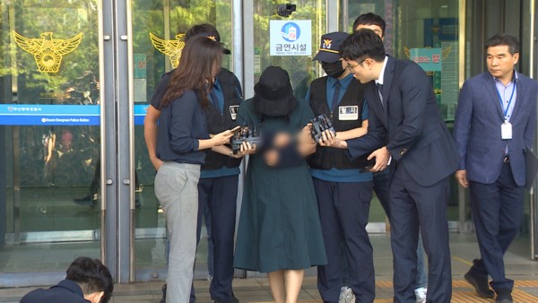 동래경찰서 현관을 나온 정유정은 '유족에게 할 말이 있느냐'는 질문에 고개를 숙이며 "피해자와 유가족에게 정말 죄송하고, 제정신이 아니었던 것 같다"고 대답했다.