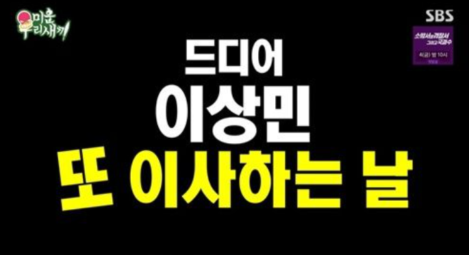 김준호, 김종민, 김희철은 새로 이사한 집에서 나쁜 기운을 몰아낸다며 현관에 북어를 묶어두고 막걸리, 팥을 뿌려 이상민을 기함하게 만들었다.