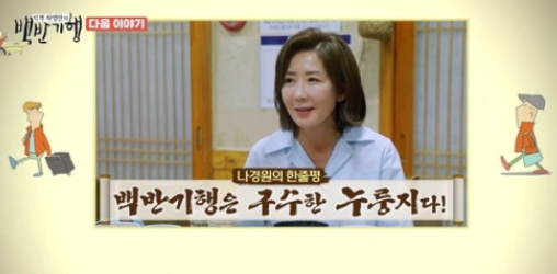 허영만은 나경원에게 "정치란 나한테 뭐냐"라고 물었다. 이에 나경원은 "정치 이야기 자꾸 하시니까 추어탕 맛 없어지려고 한다"라고 맞받아쳐 이목을 모았다. 또 나경원은 "'백반기행'은 누룽지 같은 프로그램이다. 저도 누룽지 같은 사람이 되어야겠다. 출연하길 잘했다"고 전했다.