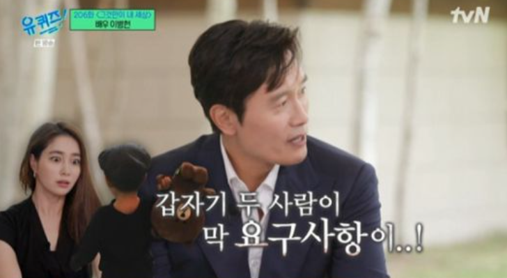 이병헌은 "오늘 아침 아내와 아들 준후에게 '유퀴즈' 나간다고 했더니 아들이 '내 얘기도 해달라'고 하더라. 나하고 제일 친한 친구 누구도 얘기해달라고 했다"며 아들 친구들을 언급해 웃음을 자아냈다.