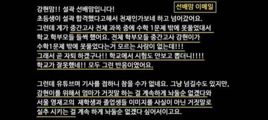 백강현 아버지는 유튜브 계정을 통해 ‘백강현, 선배맘의 이메일 공개’라는 제목의 영상을 올렸다.