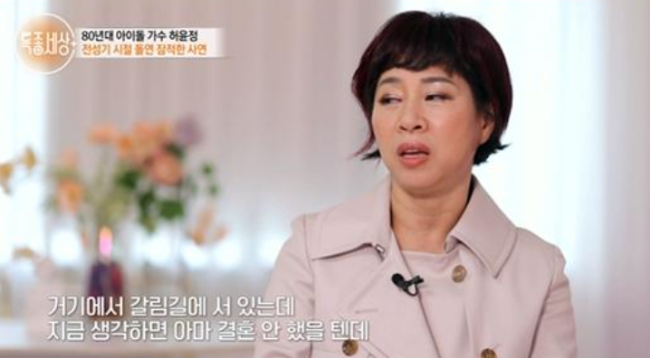 허윤정은 "하루 14~15개의 무대에 섰었다"고 전성기를 떠올리며 "나이 서른이 되어가는데 결혼을 할 것인지 노래를 할 것인지 갈림길에 섰다. 지금 생각하면 결혼을 안했을 텐데 그 때는 철이 없어서 결혼하고 활동을 중단했다"고 털어놨다.