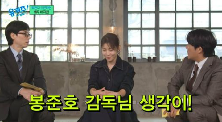 하지원은 "저를 탐구하고, 세상에 대한 탐구를 같이 시작하다가 봉준호 감독님 생각이 나더라"라며 "한 번도 뵌 적은 없는데, 감독님이 사회나 인간관계에 대한 이야기를 영화에 풀어나가시지 않나. 1번으로 감독님이 떠올랐다"고 고백했다.