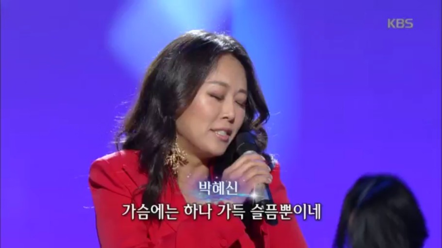 박혜신은 녹화 전날까지도 지방 행사를 다녀왔다며 “현역 생활을 하며 겪었던 아픔을 노래로 씻겠다”는 각오로 박수를 받았다.