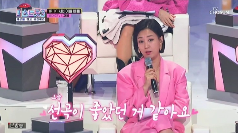 유일하게 버튼을 누르지 않은 박칼린 마스터는 "조금 더 무대를 즐겼으면 하는 마음이 있었다"라며 긴장한 모습을 내비친 채윤에 대한 안타까운 마음을 전했다.