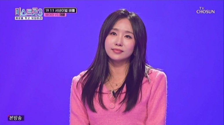 '15년차 베테랑 트롯 가수'로 소개된 채윤은 "계속 늘어가는 연차가 부담스러운, 외길 트로트 인생"이라며 자신을 소개했다.