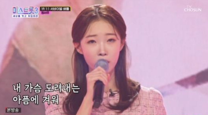 정서주는 이미자의 '동백 아가씨'를 선곡해 나이를 뛰어넘은 안정적인 실력을 뽐냈다.
