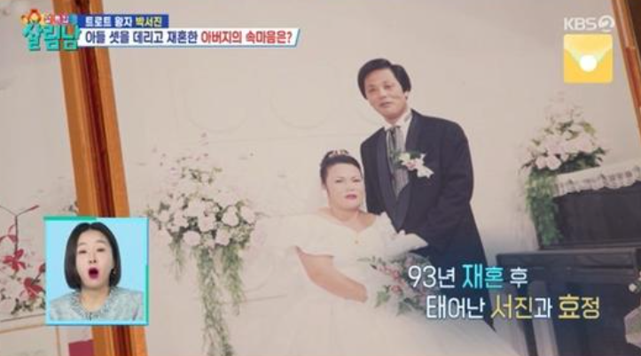 박서진의 아빠는 “이혼 후 7년을 혼자 살았다. 아들 셋을 데리고 살다가 선을 봤는데 다들 자기 자식만 키우려고 하고 내 자식은 버리려고 했다”라며 “마지막으로 선을 보러 갔는데 내 자식을 자기 자식처럼 키워준다고 했다. 그래서 빠져들었다”라고 아내와의 첫 만남을 회상했다.
