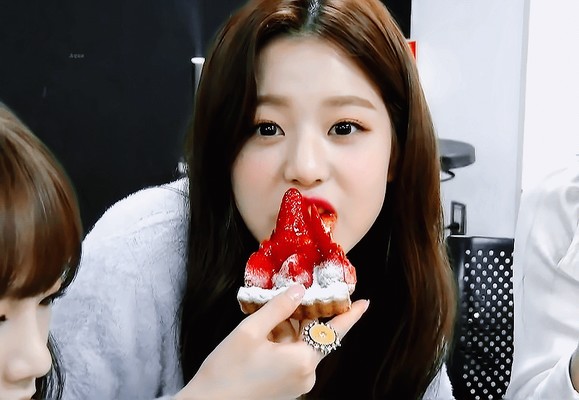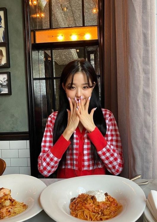 공개된 사진 속에는 아이즈원 멤버 장원영의 모습이 담겼는데 빨간색 니트를 입고 있는 장원영은 식당에서 음식을 먹으며 다양한 포즈를 취하고 있다.