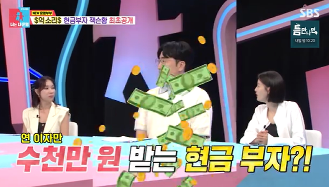 서장훈이 “연이자만 수천만원을 받는 현금부자라는 소문이 있다”, 김구라는 “연이자가 수천만원이라고 하면 현금만 10억 원대 보유하고 있는 것”이라고 말했다.