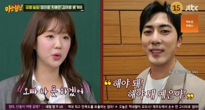 지예은은 "내가 모텔 앞에서 원훈 오빠랑 연기한 게 있다. 내가 오빠한테 막 자극적으로 해줘야했다. 근데 오빠도 교회를 다녔다"라고 밝혔다.