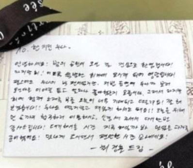 최정훈이 한지민에게 보낸 손편지가 다시 화제를 모으고 있다. 당시 한지민은 최정훈에게 받은 손편지를 SNS에게 공개했다.