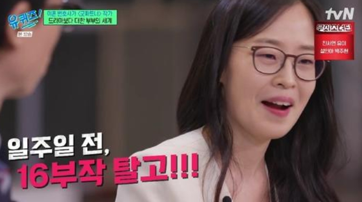 '유퀴즈'에서 최유나 변호사는 입이 떡 벌어지는 이혼 에피소드를 대방출한 바 있다.