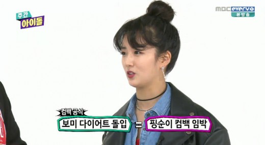 보미는 평소 몸무게 50kg내외이지만 활동을 하면 단 2개월 동안 8kg을 감량하여 42kg되었다고 한다.
