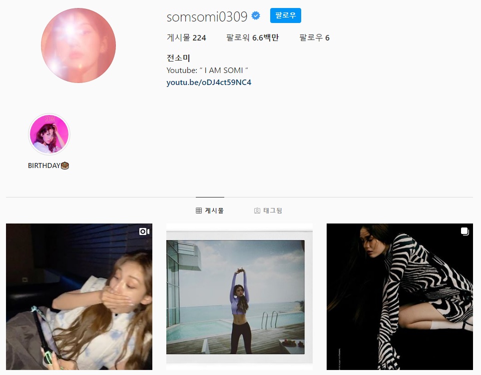 전소미의 인스타그램 계정은 somsomi0309이다.