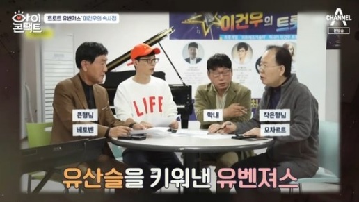채널A 예능 프로그램 '아이콘택트'에는 신인 트로트 가수 유산슬(유재석)을 키워낸 '유벤져스' 작사가 이건우, 작곡가 박현우, 편곡가 정경천이 등장했다.