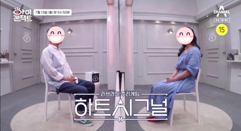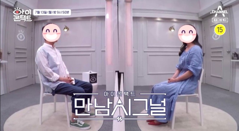 채널A 아이콘택트에서는 러브라인 추리게임-만남시그널이라는 부제와 함께 눈맞춤방에 마주앉아 있는 남녀의 모습으로 시작되었다.