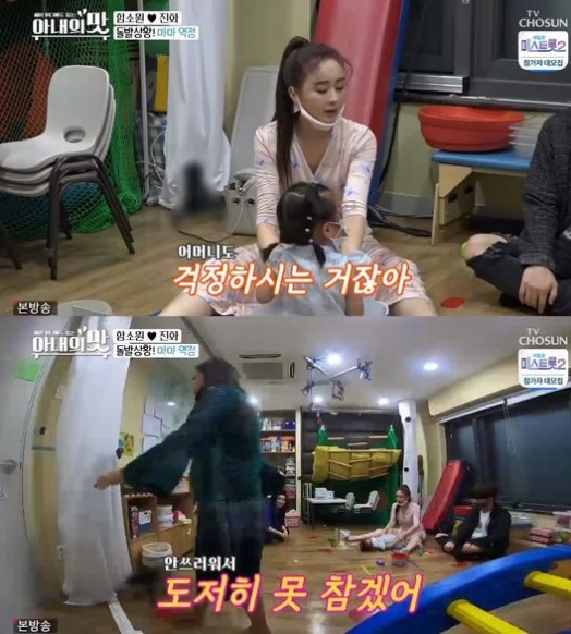 딸 혜정은 갑자기 마스크 족쇄에 눈물을 터트렸고 이 모습을 보던 마마는 "숨 못쉬면 어쩔거냐, 안 쓰러워 도전히 못 참겠다, 못 보겠다"며 갑자기 역정을 내면서 자리를 박차고 나갔다.