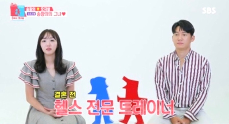 송창의의 아내 오지영은 "원래 직업으로 15년, 16년 헬스트레이너를 했다"며 현재는 결혼 후 은퇴 했다고 밝혔다. 이에 송창의는 "소개로 만났다. 아내가 체대를 나와 운동을 전공했다"고 소개했다.