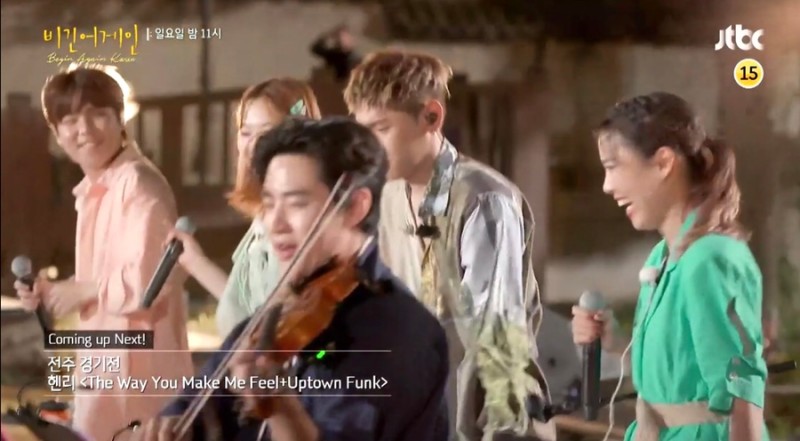 이어 헨리의 솔로곡 Mark Ronson - Uptown Funk에서 흥이 폭발한 크러쉬는 헨리의 바이올린 연주에 급 폭풍 댄스를 선보이며 관객들은 물론 멤버들의 큰 호응을 끌어냈다.