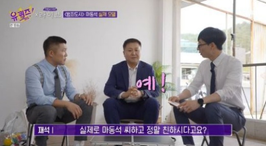 앞서 '유 퀴즈 온 더 블럭'에서는 '경찰 특집'이 꾸며진 가운데 영화 '범죄도시' 마동석의 실제 주인공인 윤석호 경위가 출연해 관심을 끌었다.
