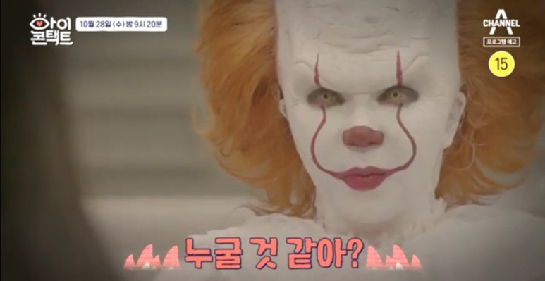 눈맞춤방에 앉은 삐에로는 한 여성과 마주했고, 상대방을 향해 “누굴 것 같아?”라고 알 수 없는 목소리로 물어 궁금증을 자아냈다.