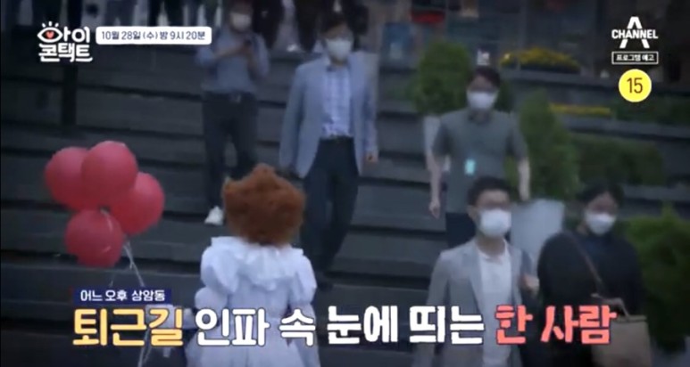 오는 28일 방송되는 '아이콘택트'에서는 빨간 풍선을 들고 상암동 퇴근길을 걷고 있는 삐에로가 등장해 관심이 높아지고 있다.