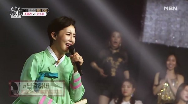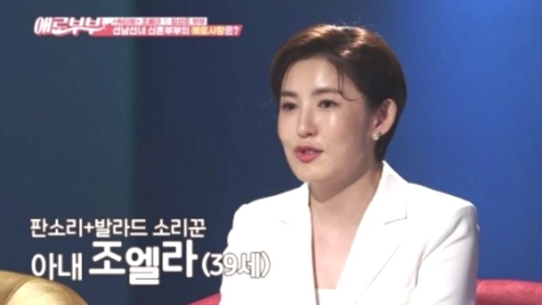 ‘애로부부’의 속터뷰에는 한 주부 트로트 경연 프로그램에서 준우승을 차지해 화제를 모은 소리꾼 조엘라가 3살 연하의 남편이자 데뷔 10년차 뮤지컬 배우 원성준과 함께 출연했다.