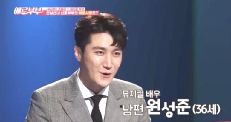 남편 원성준은 직업은 뮤지컬 배우이고 1985년 12월 11일 생으로 올해 나이 36세이다.