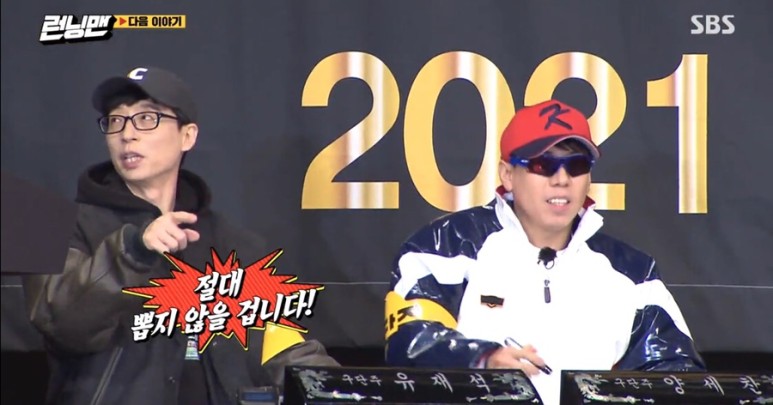 ‘2021 런닝리그 신인 드래프트’ 콘셉트로 진행된 ‘런닝맨’ 오프닝에서 유재석과 양세찬은 각 팀의 구단주로 변신해 이들의 영입에 열을 올렸다.