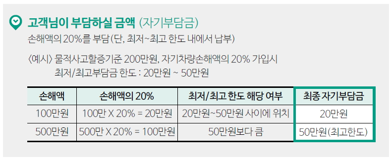 자차 자기부담금은 자차보험 처리시 최소 20만원에서 최대 50만원까지 내야 합니다.