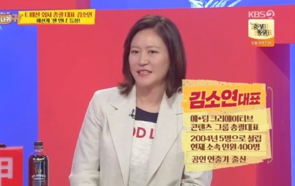 크리에이티브 콘텐츠 기업 에스팀의 김소연 총괄 대표가 '라디오스타'에 출연해 관심이 높아지고 있다.
