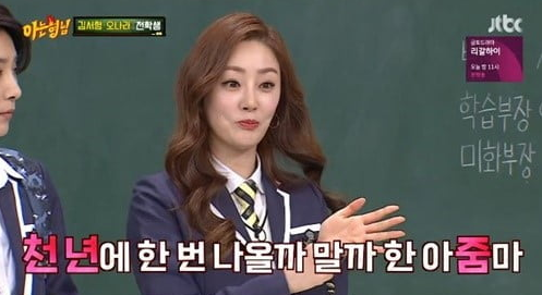 오나라는 '천년줌'이라는 별명으로 불리고 있다고 하며, "천년에 한 번 나올까 말까 한 아줌마란 뜻이다"며 의미를 밝혔다.