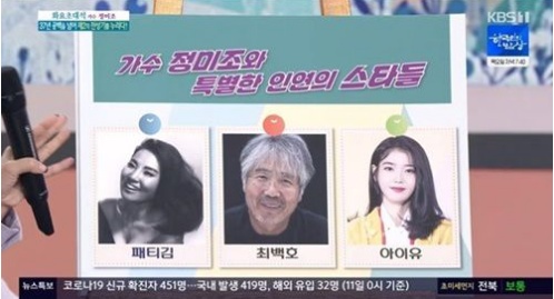 정미조는 '아침마당'에 출연해 가수 아이유에 대한 고마움을 전했다.