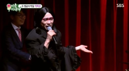 이희문은 코르셋까지 하는 등 여장 패션을 선보였고 그는 손가락까지 분장하는 모습을 보였다. 이를 본 동료는 "집에서 맨날 분장만 연구하나봐"라고 너스레를 떨었다.