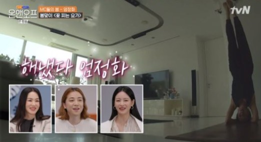 엄정화는 다양한 동작을 잘 소화했지만 물구나무 자세만큼은 어려워했지만 열 번의 시도 끝 성공해 박수를 받았고 엄정화는 스스로에게 "잘했다"고 말하며 뿌듯해했다.