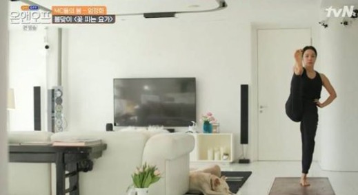 엄정화는 요가를 하며 자기관리에 집중하는 일상을 공개했는데 그는 "요가를 한 건 햇수로는 3년 좀 넘었다. 제가 하는 건 아쉬탕가 요가인데 60가지 동작을 이어나가는 거다. 완벽하지 않지만 천천히 하고 있다"고 설명했다.