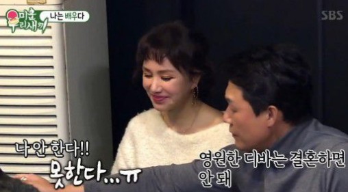 엄정화는 배정남과 함께 촬영 중인 영화 회식 현장에 모습을 드러냈고 배정남은 “우리의 디바는 결혼 하면 안된다”면서도 엄정화를 향해 “결혼 생각은 있느냐”고 물었다.