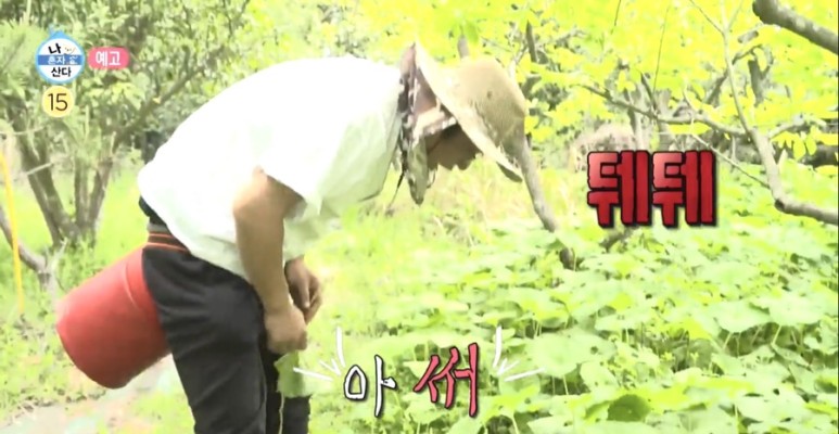 텃밭 옆 쉼터에서 곽도원은 자연스럽게 노래를 틀고 흥 부스터를 끌어올리기 시작했다.