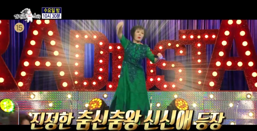 황치열은 “남의 시선을 신경 쓰지 않는 자아도취 댄스를 만드신 분”이라며 존경심을 표현했고 채리나는 “신신애 선배님의 춤은 타고나야 한다. 본인 필대로 추신다”라며 필살 포인트로 표정을 꼽았다.