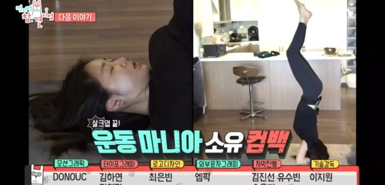 소유는 역대급 운동 마니아의 모습을 드러내 눈길을 끌었다. 아침부터 스트레칭, 물구나무서기 등 고난도 요가 자세로 공복 운동을 이어갔다.