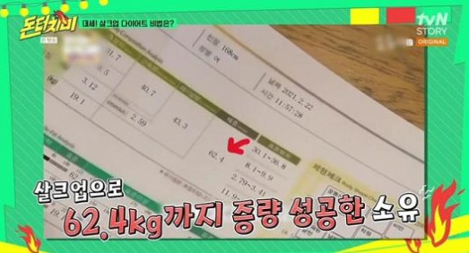 소유는 "2달 동안 62.4kg으로 증량한 후 꾸준한 운동으로 6주 만에 56.6kg까지 감량했다"고 답해 놀라움을 안겼다.