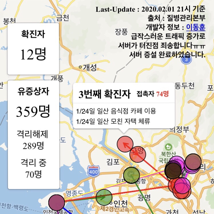 코로나바이러스 확산 확인 및 예방에 큰 도움이 되는 코로나맵은 급작스러운 트래픽 증가로 서버가 터졌는데 현재 서버 증설을 완료하여 접속이 가능합니다.