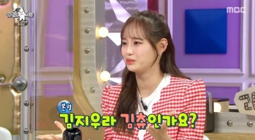 츄는 "데뷔 전 소속사에서 활동명을 정해주는데 '너는 츄' 하는 거다. 한 글자라서 당황했다. 설마 성이라도 있겠지 싶어서 김츄냐고 물었다. '본명이 김지우니까 김츄인가요? 무슨 츄일까요?' 했더니 '그냥 츄'라고 하더라. 그래서 감사하다고 했다"라고 전해 웃음을 안겼다.
