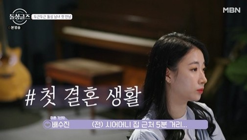 유튜버 배수진은 "이혼한지 1년 됐다"라며 "첫 결혼 생활할 때 시어머니 집 근처, 걸어서 5분 거리에서 살았다"라고 밝혔다.