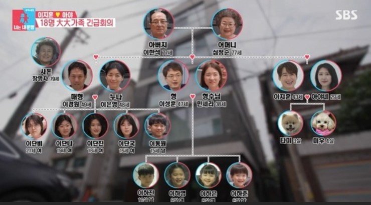 이지훈은 한 건물에 거주 중인 가족 18명 소개에 나섰다.